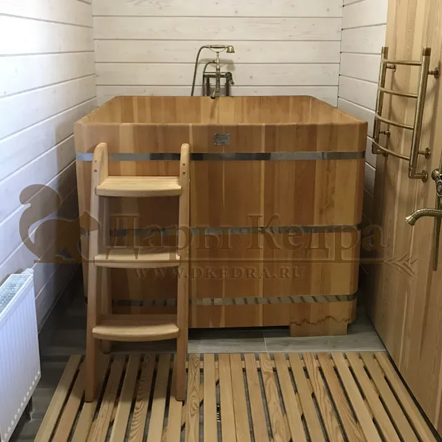 Заказывали себе домой две ванны с подиумом: одна ванна с пластиковой вставкой для более частого использования, вторая ванна-просто из кедра, так захотел муж, чтобы разные ванны были. После бани окунуться в прохладную водичку в ванной - это чудо! И с ними, кстати, намного уютнее стало.