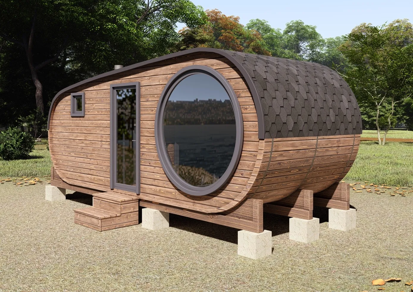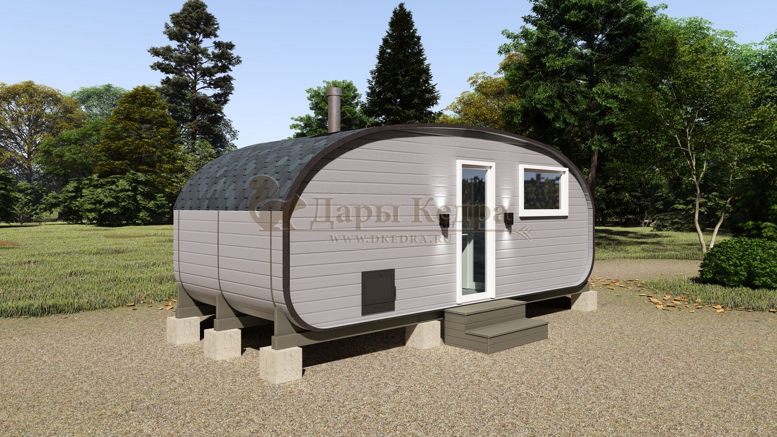 Симбиоз круглой и квадратной бани-бочки. Разработано с учётом эргономики, в ней так же просторно, как и в квадро-бочке, но при этом полукруглая крыша не дает задерживаться снегу и влаге на кровле. А еще такая баня безусловно красивая, мобильная и доступная каждому!