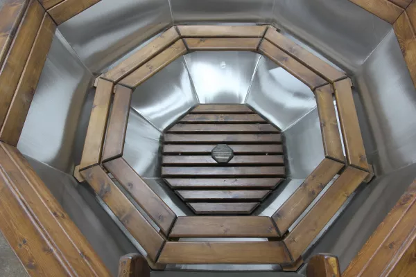 Банный чан из нержавеющей стали Ø-2000 на подставке с ветрозащитой и печью СТ3