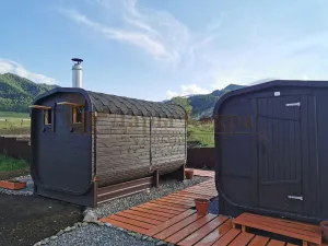 Мобильная баня-бочка с каждым днем набирает все большую популярность благодаря её возможной транспортировки куда угодно: на отдых в лесу, на рыбалку или на побережье реки
