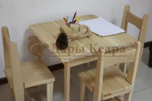 Детский набор мебели точно придется по вкусу Вашим детям и станет отличным подарком на день рождения! Аромат кедра в детской комнате добавит тепла, уюта и, конечно, здоровья. Ведь фитонциды кедра обеззараживают воздух и являются своего рода "природными лекарями".