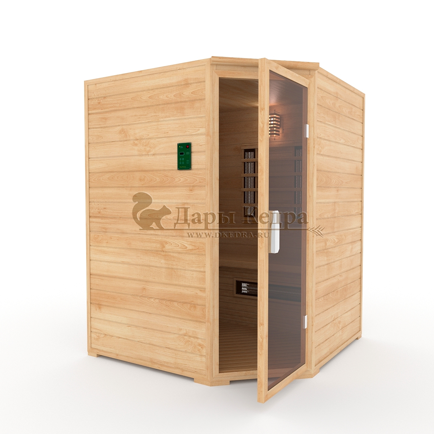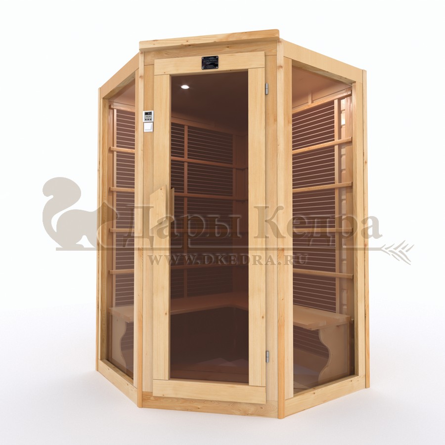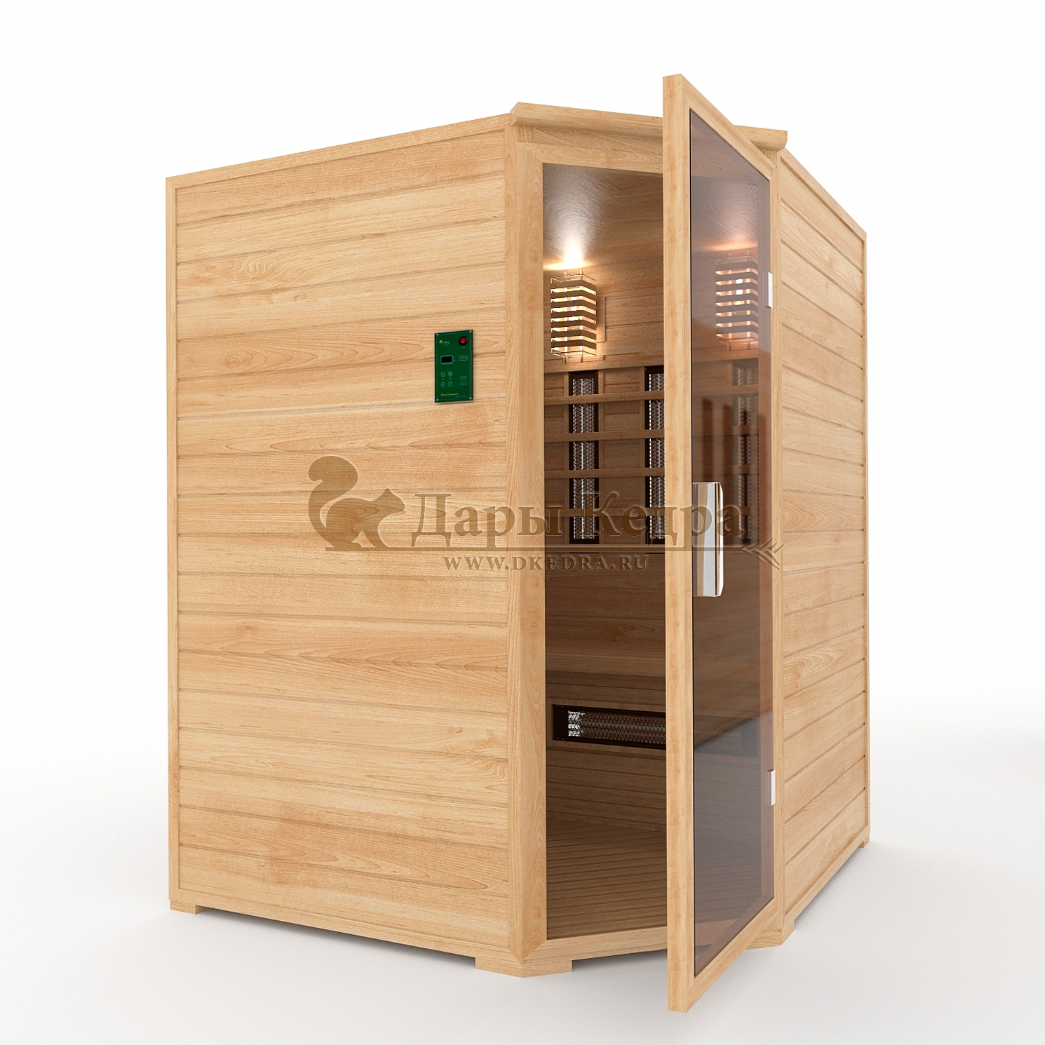 • Четырёхместная угловая инфракрасная сауна кабина из кедра с керамическими излучателями Это специально оборудованная кедровая кабина для прогрева тела человека сухим теплом. Воздух в таких парных не нагревается. Инфракрасные лучи воздействуют на тело, равномерно прогревая мышцы, суставы и органы. Керамические излучатели похожи на лампы, имеют высокую температуру нагрева, поэтому защищены противоожоговыми решетками. Тело человека в таких саунах нагревается интенсивнее. Работает кабина за счет электричества. Установка сауны в угол, позволяет рационально использовать пространство помещения. Подходит как для домашнего использования, так и для коммерции. Обращаем Ваше внимание что в стандартную комплектацию входит трапик для ног, но вы можете его заменить на цельный пол совершенно бесплатно! Целебная древесина кедра и инфракрасные лучи благотворно влияют на организм человека в целом. При регулярном использовании инфракрасной сауны укрепляется иммунитет, улучшается кровообращение и состояние кожи, выводятся токсины.