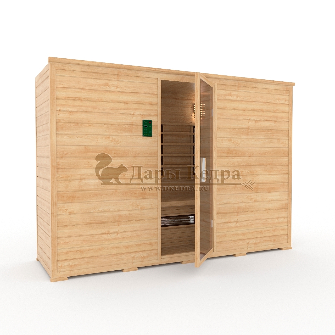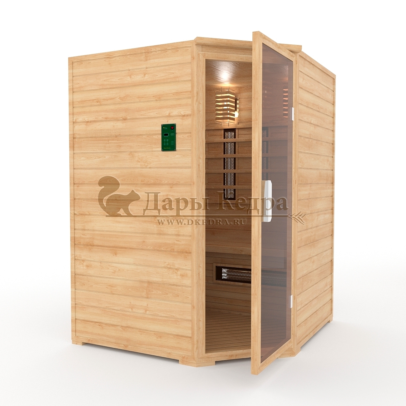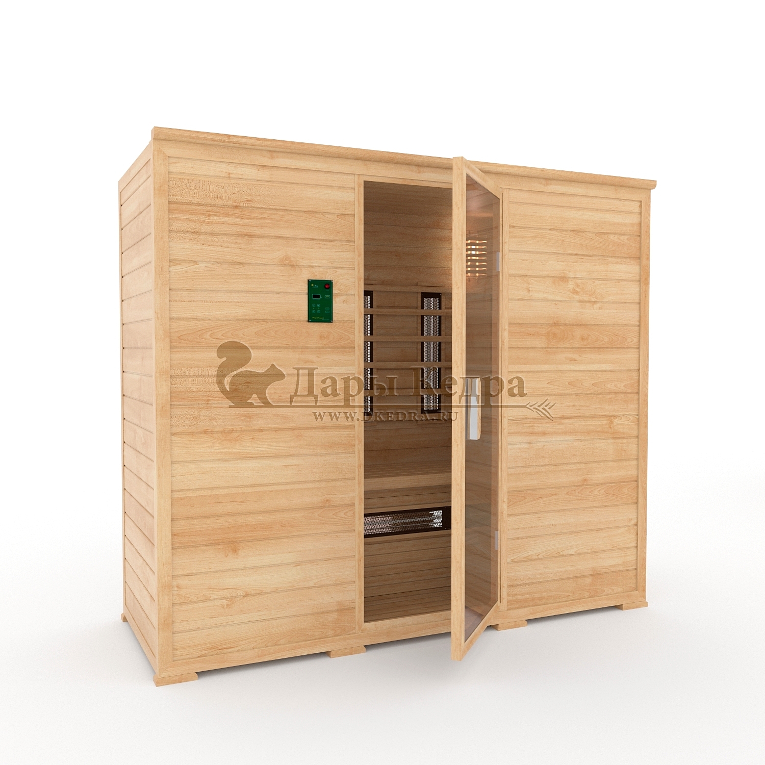 Инфракрасная сауна из кедра представляет собой кабинку с ик-нагревателями. Главное отличие такой кабины от финской парной или классической бани заключается в прогреве тела, а не воздуха. Внутренний прогрев тканей считается полезным и щадящим, за счет чего в инфракрасной кабине могут принимать лечебные процедуры даже дети и пожилые люди.