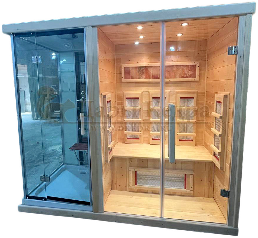 • Трёхместная инфракрасная сауна кабина из кедра с керамическими излучателями Это специально оборудованная кедровая кабина для прогрева тела человека сухим теплом. Воздух в таких парных не нагревается. Инфракрасные лучи воздействуют на тело, равномерно прогревая мышцы, суставы и органы. Керамические излучатели похожи на лампы, имеют высокую температуру нагрева, поэтому защищены противоожоговыми решетками. Тело человека в таких саунах нагревается интенсивнее. Работает кабина за счет электричества. Трехместная инфракрасная сауна с керамическими излучателями подойдет как для домашнего использования, так и для коммерции. Обращаем Ваше внимание, что в стандартную комплектацию входит трапик для ног, но вы можете его заменить на цельный пол совершенно бесплатно! Целебная древесина кедра и инфракрасные лучи благотворно влияют на организм человека в целом. При регулярном использовании инфракрасной сауны укрепляется иммунитет, улучшается кровообращение и состояние кожи, выводятся токсины.