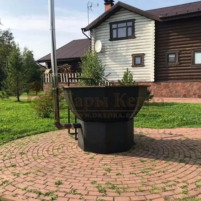 - В уходе банная чаша более простая, чем купель с печкой. Опять же, это обосновано материалом изготовления. Если планируется постоянное парение с травами, то деревянные стенки гораздо сложнее очистить от травяного настоя, чем стальные.