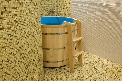 Вот такая купель стоит в семейном отеле. За счет пластиковой вставки легко мыть после большого потока клиентов. Пользуемся давно, поэтому на качество проверили!